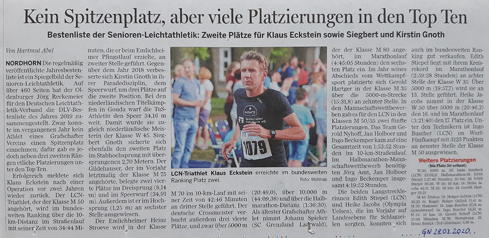 GN vom 28.03.2020: Platz zwei über 10 Kilometer in deutscher Bestenliste 2019